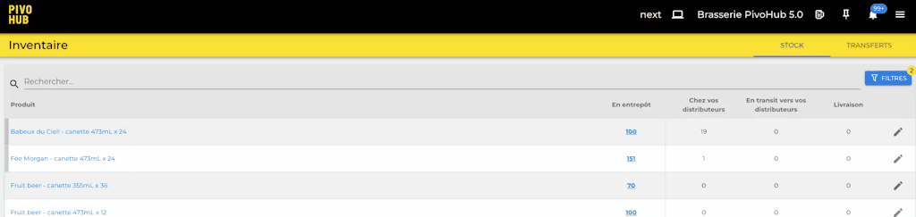Il est possible d'effectuer des transferts d'inventaire de votre compte vers celui d'un distributeur. Que votre distributeur utilise ou non Pivohub, vous avez la possibilité de réaliser des transferts afin de maintenir vos inventaires à jour directement sur la plateforme.