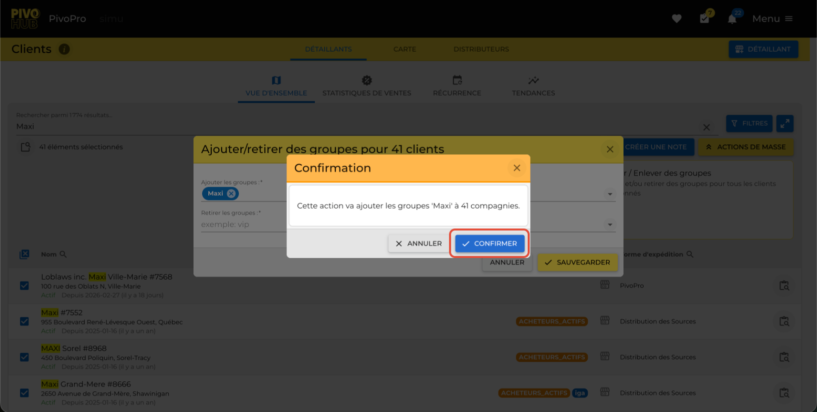 4- Confirmez votre opération et vous aurez terminé d'ajouter des clients à un groupe.